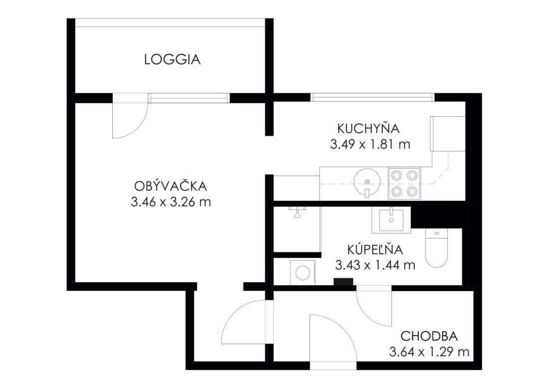 • poschodie: 1.p/4 p. (pod bytom je ešte byt na prízemí – pod kuchynskou časťou)