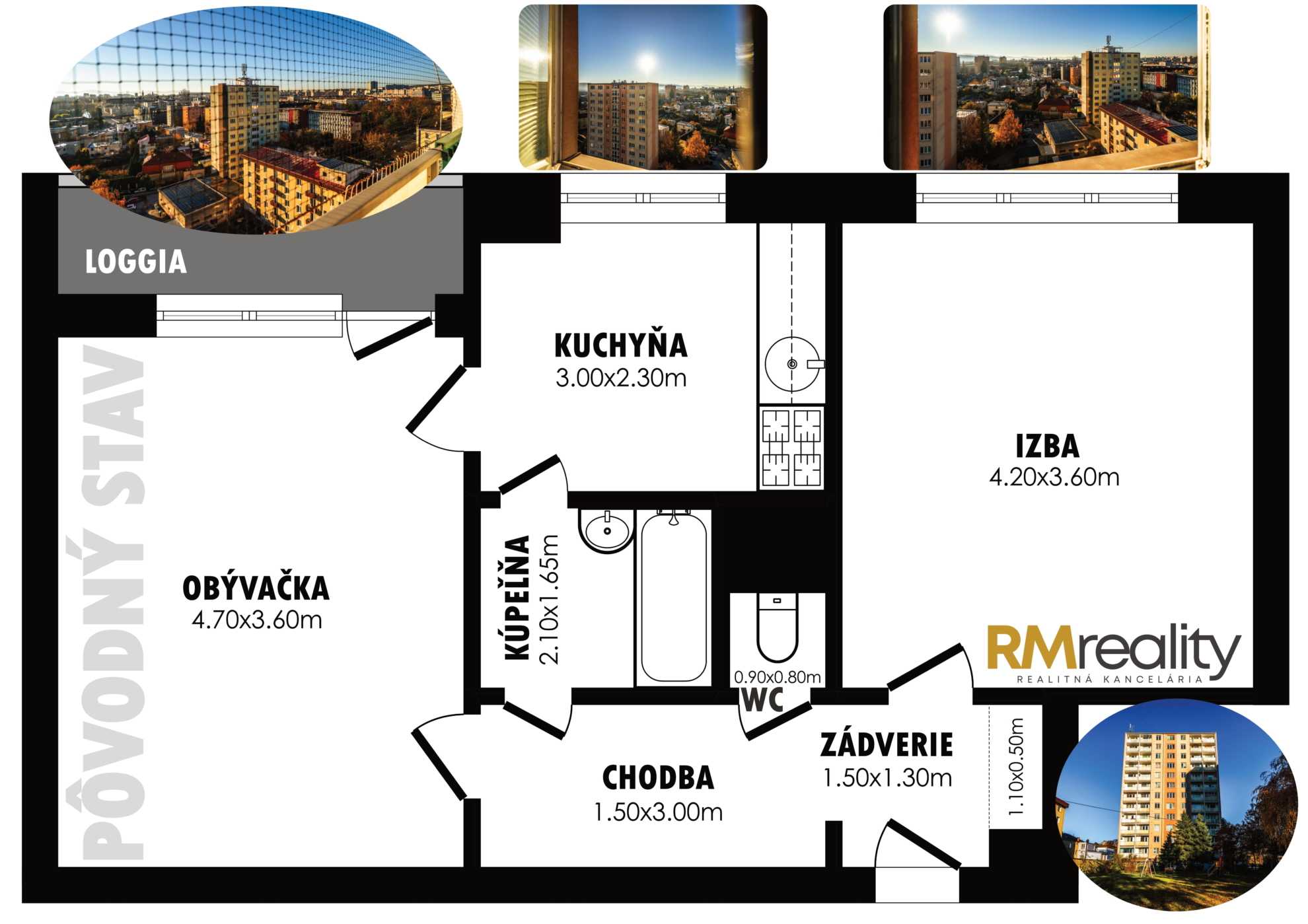 loggia: cca 4 m² (orientovaná na juh + profesionálne osadenú sieť proti holubom)