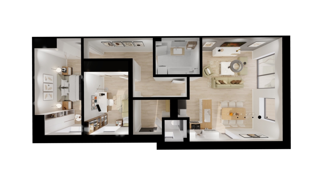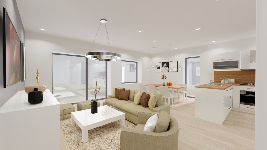 2. máte možnosť zmeniť ešte dispozíciu bytu a doplniť vybavenie (rekuperácia, klimatizácia, vykurovanie tepelným čerpadlom, tieniaca technika)