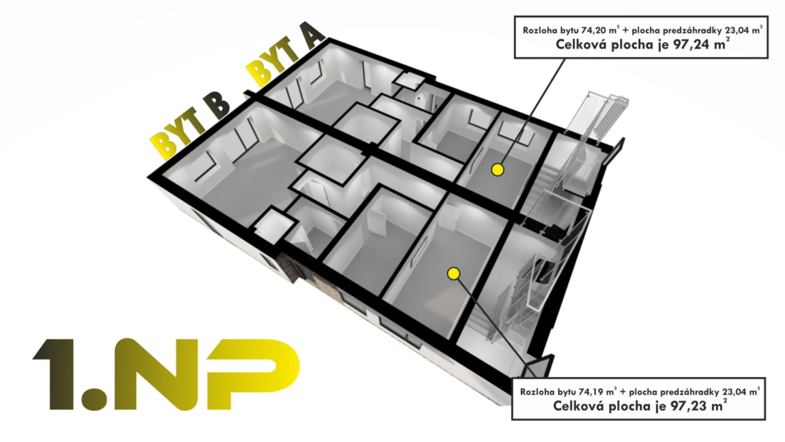 Označenie bytovej jednotky: SO 02 – BYT A – 1.NP