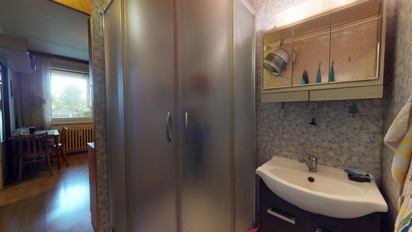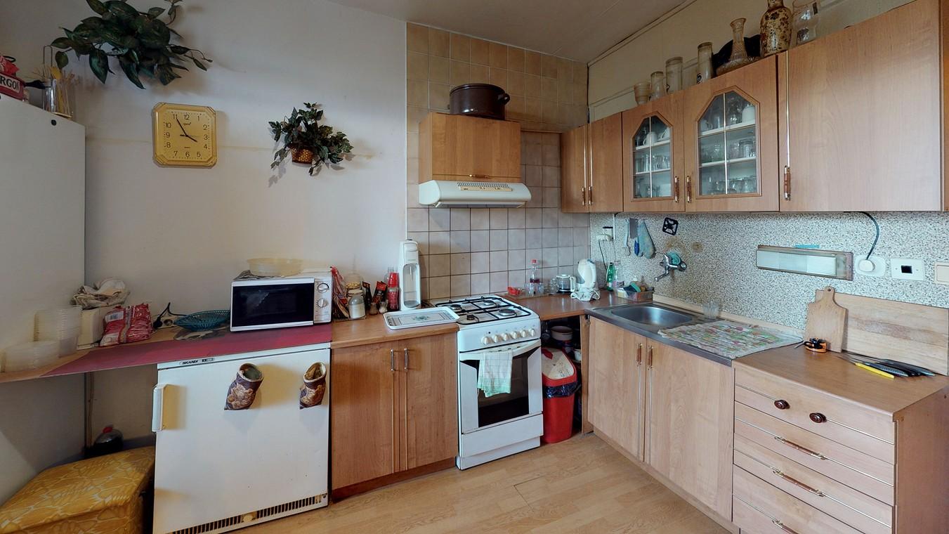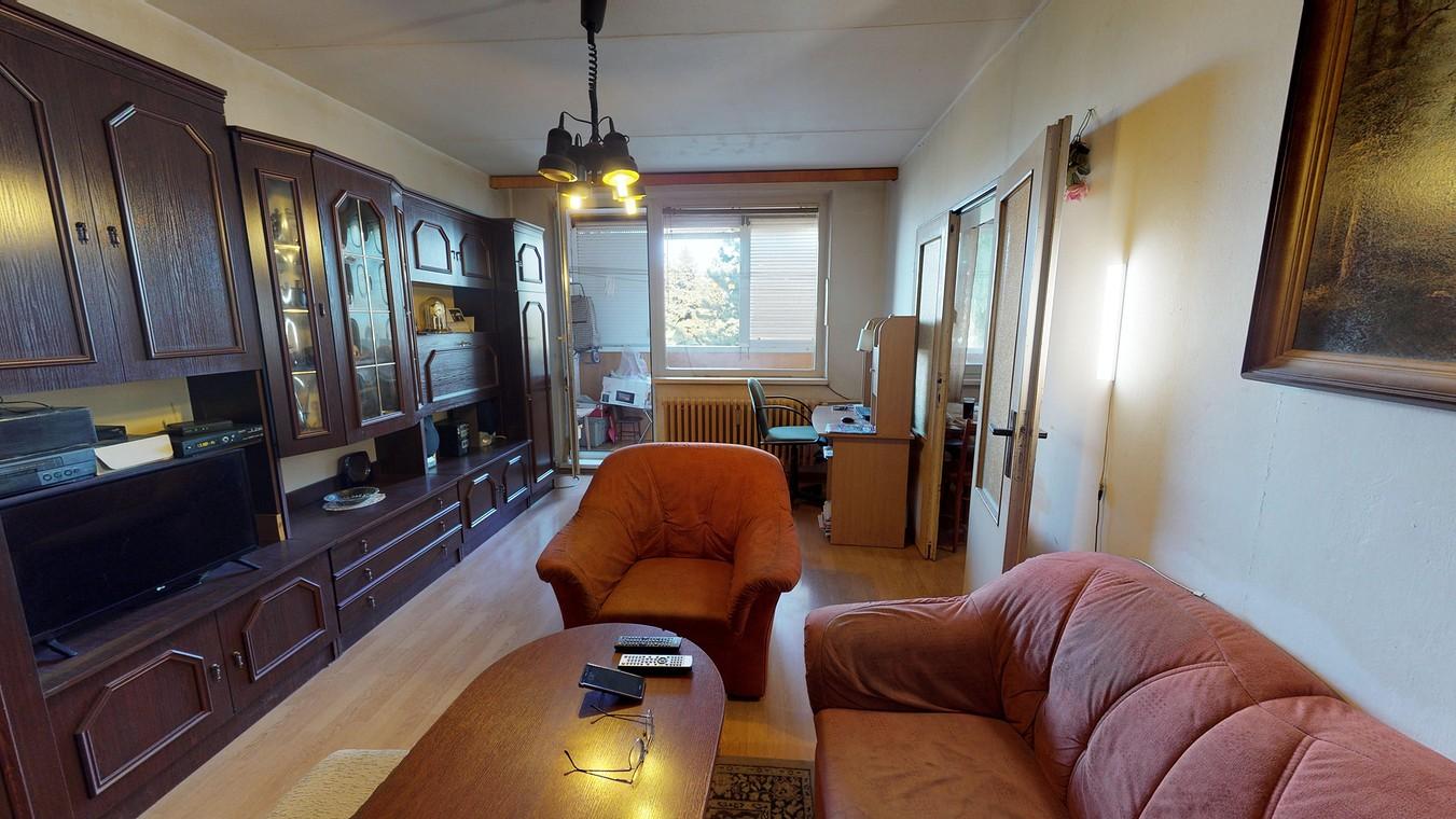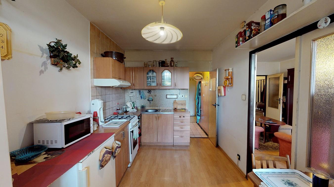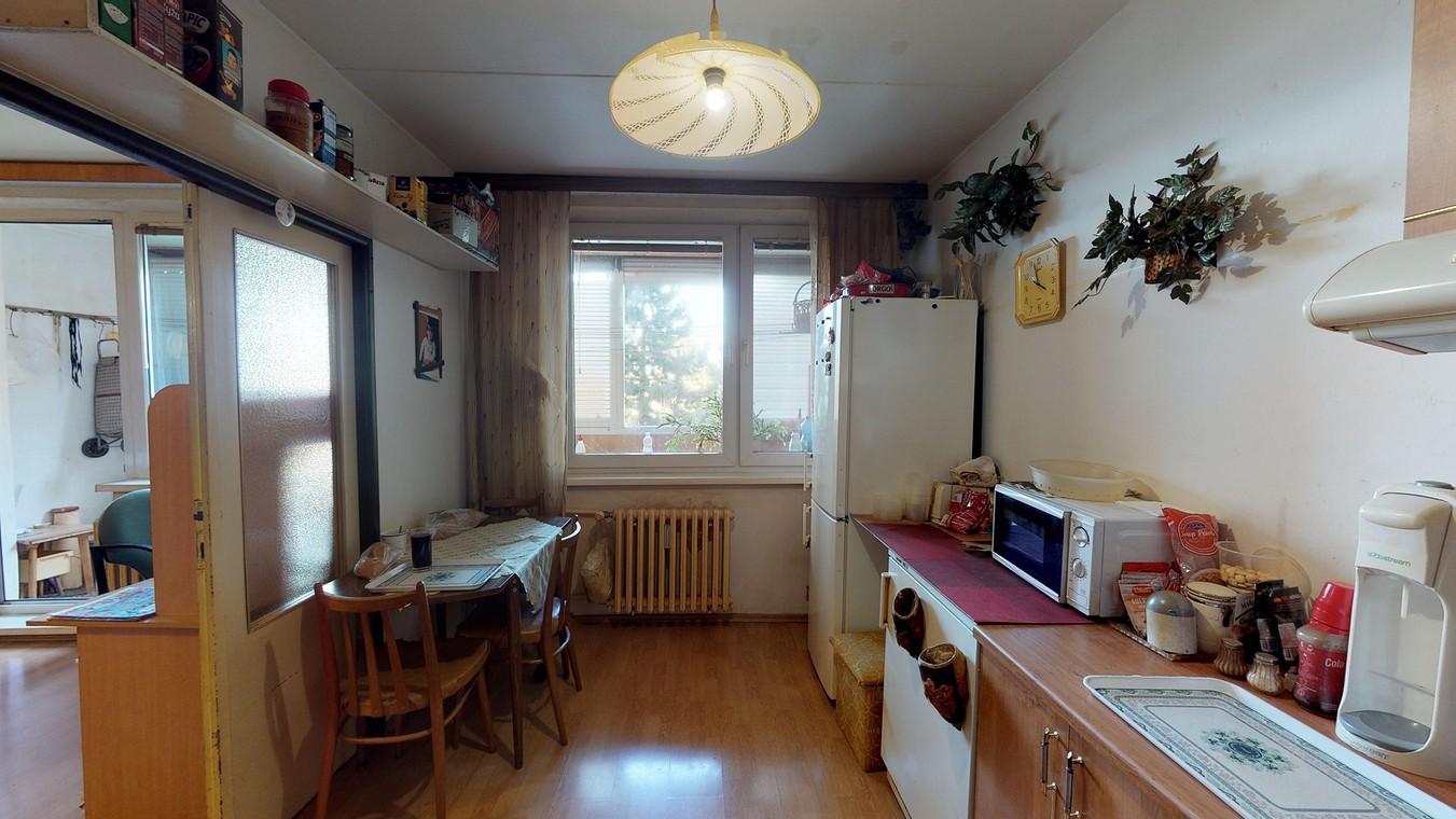 Ponúkaná nehnuteľnosť sa nachádza na vysokom zvýšenom prízemí, je v zachovalom pôvodnom stave, ale prebehla tam malá čiastočná rekonštrukcia – vymenené plastové okná s interiérovými žalúziami, laminátová podlaha v dvoch izbách a kuchyni, dlažba vo vstupnej chodbe, upravená loggia.