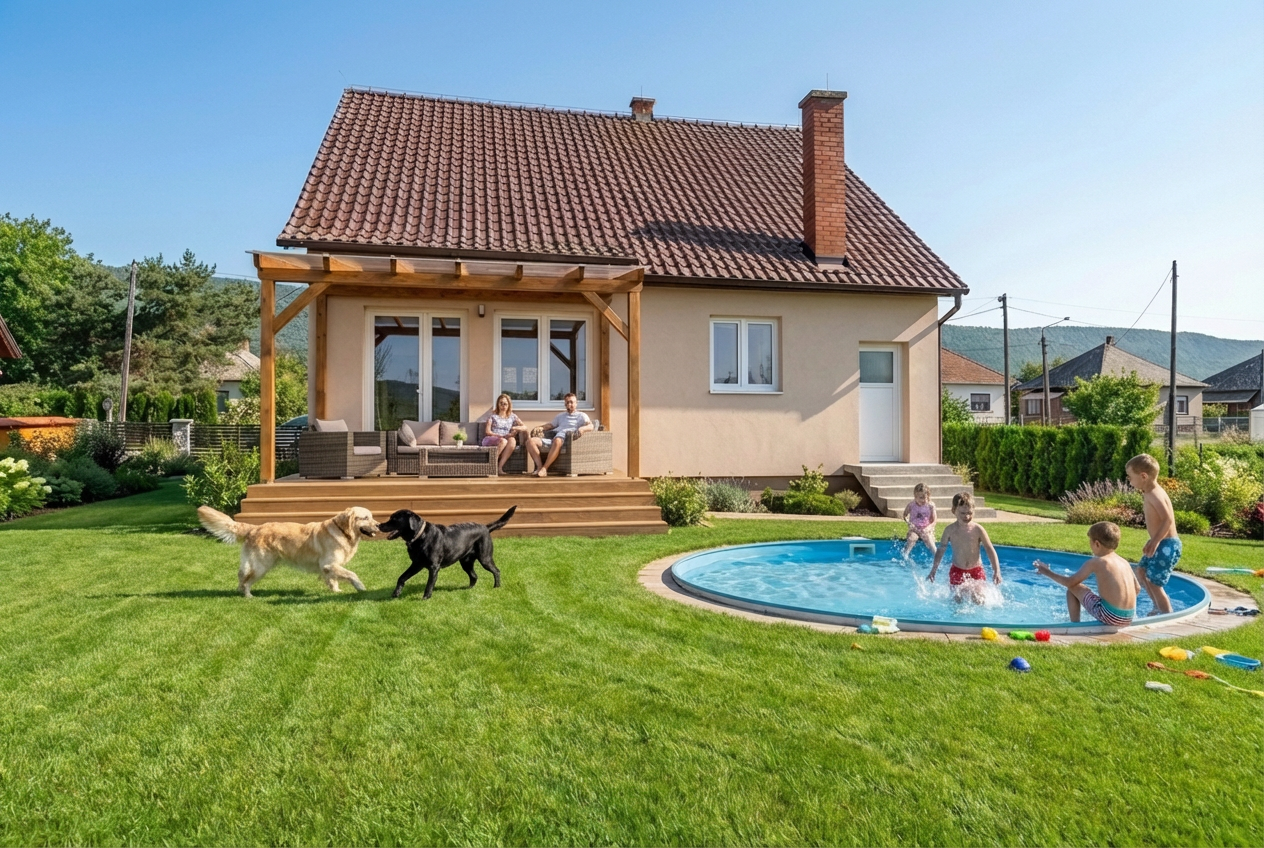 RM reality vám ponúka na predaj priestranný 5 – izbový dvojpodlažný rodinný dom v obci Komjáti v Maďarsku, s veľkým pozemkom a výbornou dostupnosťou na Slovensko. Dom je ideálnou voľbou pre klienta, ktorý si chce bývanie dokončiť presne podľa vlastného vkusu, bez nutnosti riešiť základné stavebné práce.
