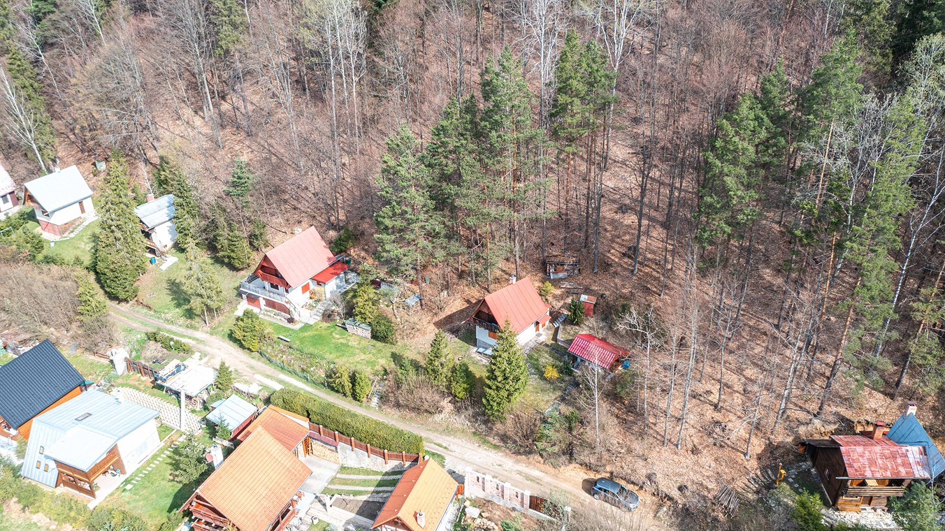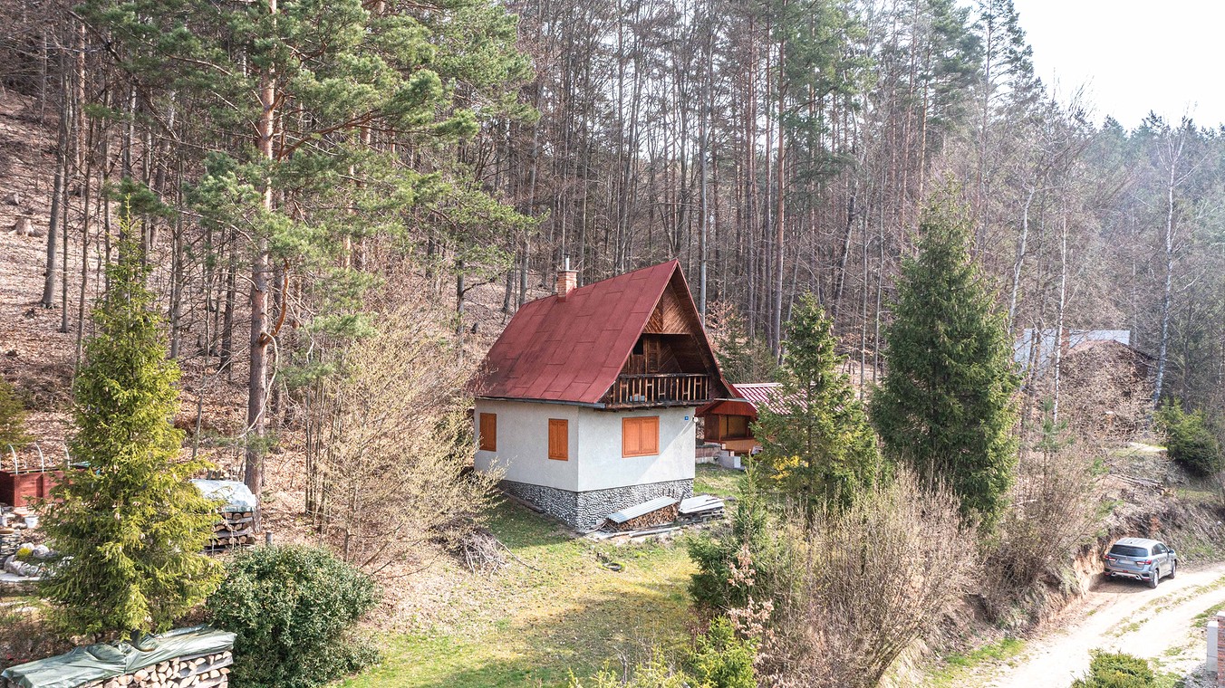 Prístupová komunikácia k nehnuteľnosti je po spevnenej ceste. Parkovanie je zabezpečené priamo pred chatou.